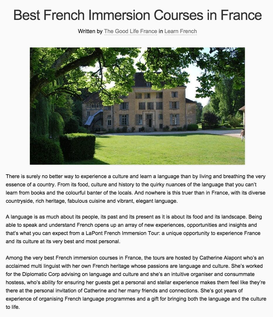 There’s lots of choice but we love Lapont’s French language immersion courses in France for lots of reasons.